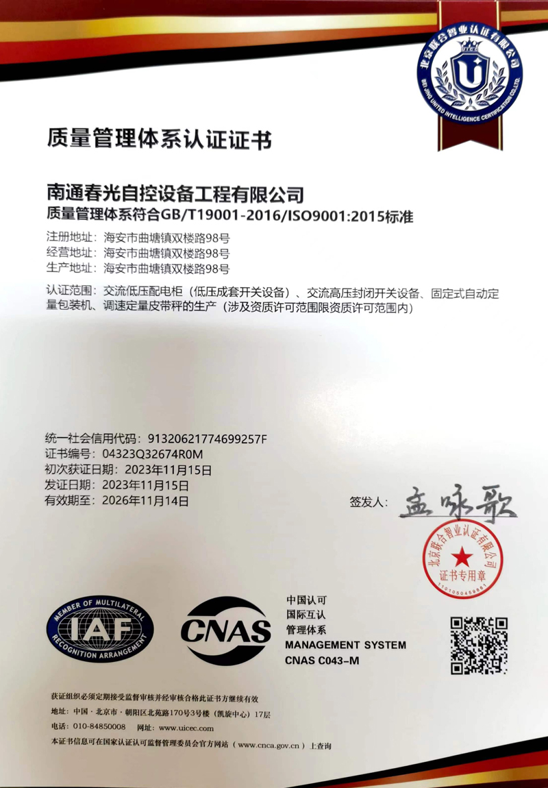 低壓抽出式開(kāi)關(guān)柜認(rèn)證證書(shū)