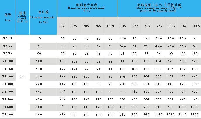 NE系列鏈?zhǔn)教嵘龣C(jī)(輸送機(jī))可以分為如下型號:NE15、NE30、NE50、NE100、NE150、NE200、NE300、NE400、NE500、NE600、NE800。